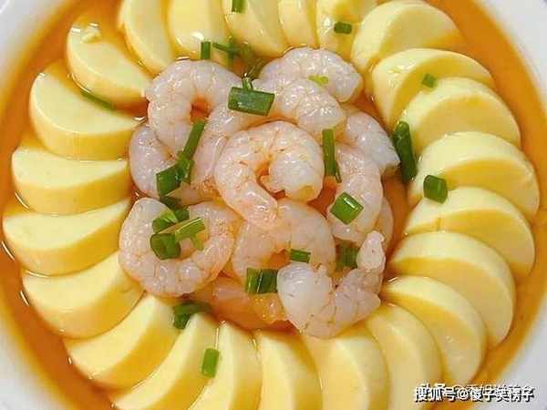 虾仁,玉子豆腐,鸡蛋,葱花。
