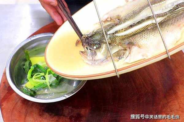 鲈鱼腌好以后开水上锅,一斤左右的鱼旺火蒸7分钟左右就熟了,蒸的时候保证“水宽、火旺、蒸汽足”,中途不要掀盖。