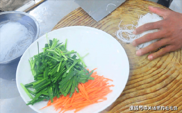 洗净后去皮,切成细丝。韭菜一把,洗净,切成三厘米左右的段。
