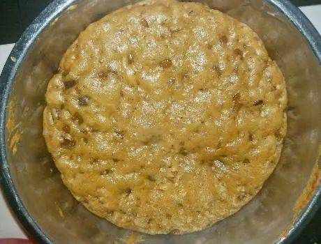 步骤3、再把切成红枣丁,再翻匀,使红枣丁能完全融入面团时,准备好模具,刷上了一层薄薄的油;