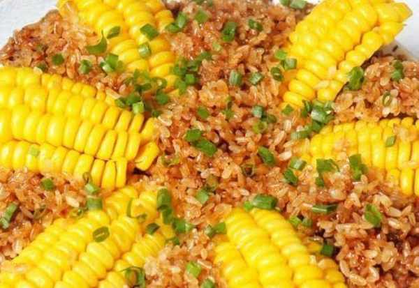 3、糯米轻轻地搓洗干净,然后加入适量清水,提前浸泡三个小时以上。玉米清洗干净,对半切开成块。