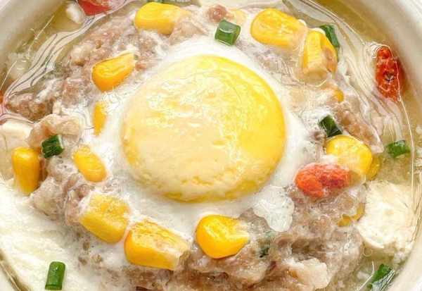 准备食材:豆腐,肉末,鸡蛋,玉米粒,葱花,姜丝。