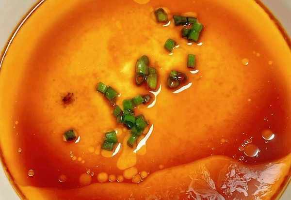 3、酱汁:碗中放入小米辣和葱花,泼上热油激发出香味,再加入生抽、蚝油和蒸出来的萝卜水,搅拌均匀即可。