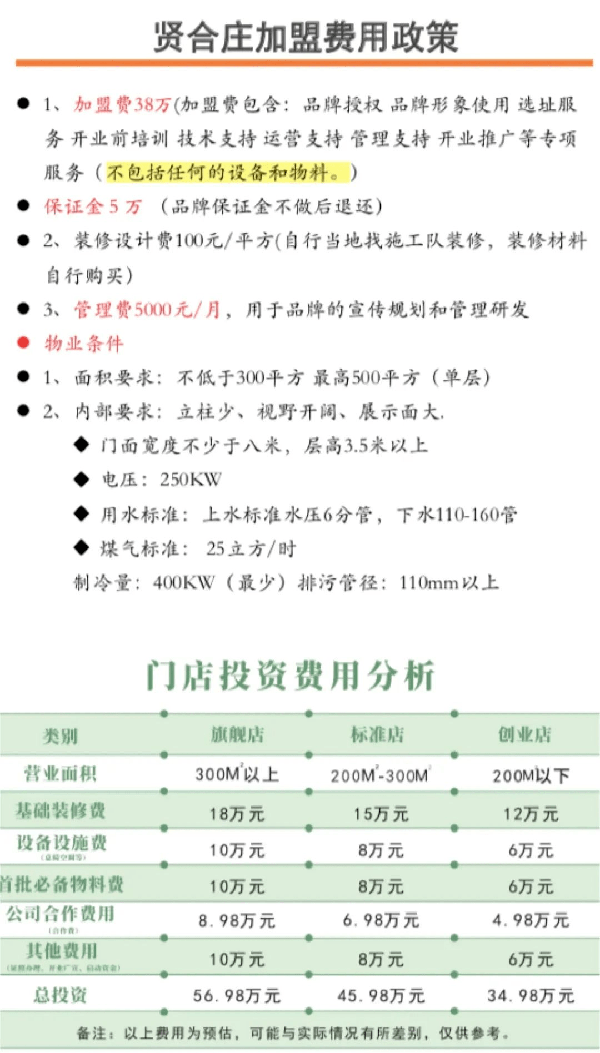 曾与不少明星餐饮店合作供货的一家大规模调味品工厂负责人透露,贤合庄、谭鸭血、每味每客、巴倒烫等品牌都是其公司的合作对象。“我们与贤合庄合作的是清汤、酱料、卤料等,说实话,明星代言品牌加盟费太高了,找到源头利润才会更高。”该负责人介绍,同样使用他们提供的明星餐饮店原材料,但加盟其他没有明星招牌的品牌,包含加盟费、设备费、装修费等费用在内的总投资可以低至35万,而明星店可高达150万至200万元。