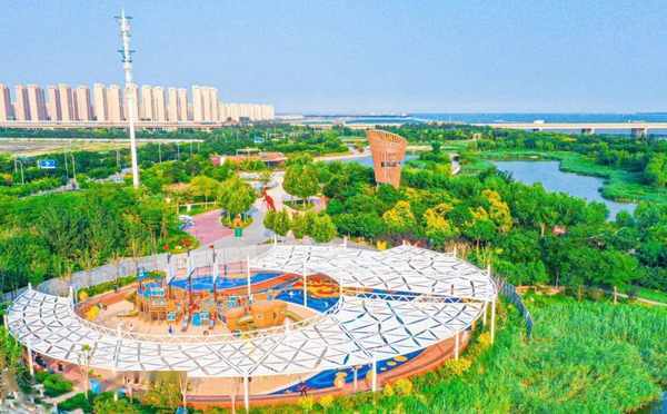 南堤公园的童梦乐园拥有满满的“海洋”元素,海豚滑索、滑梯、海盗船等游乐设施和沙坑游乐区,让孩子们可以尽情玩耍、释放天性。漫步在滨海步道,还能看⻜⻦在水面翩跹起舞,享受良好生态带来的“专属福利”。