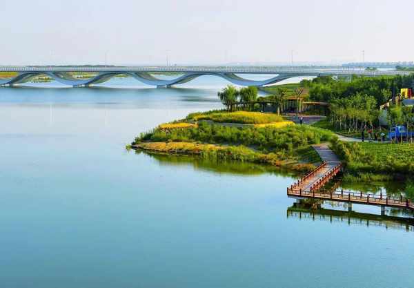 随着气温回暖,沿河步道的春日盛景正在绽放。看着充满生命力的金光菊、石竹花,吹着蓟运河上的微⻛,看彩虹大桥和“大⻛⻋”由远及近,孩子们可尽享自然与城市的和谐之美。