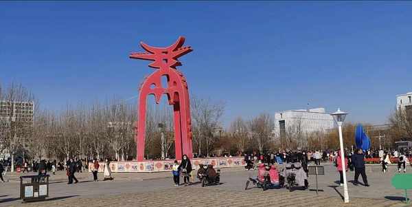 下午四点来钟,广场上的人越来越多,小朋友们在这里玩耍耍,家长们好像也回到了童年的时光,和孩子们一起玩着童年的游戏,有了父亲的参与,孩子们玩的更起劲了。杨柳青的广场前时不时的有游人在留影,毕竟呀,对外地人来说,留个影才显得有纪念意义。