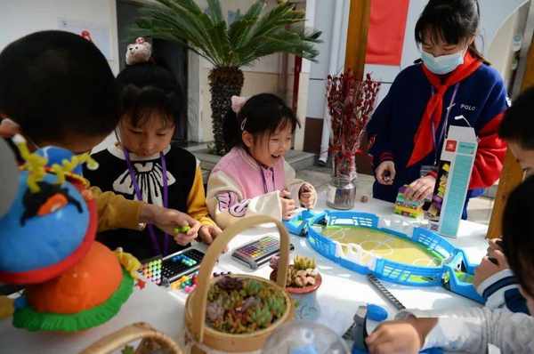 “我太喜欢玩这个搭建的游戏了。”“我今天一定要拼完这幅拼图再回家!”