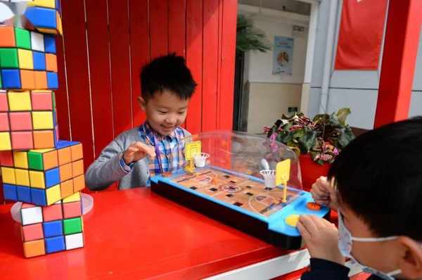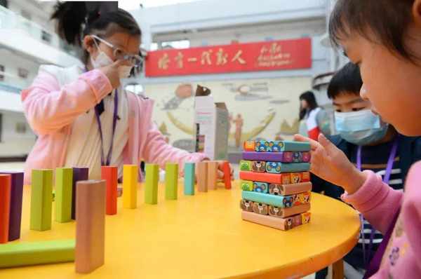 “我们的摊位主题是‘中国梦’,是我们几个女孩子一起设计的,目前暂时是带着弟弟妹妹玩关于中国传统习俗的拼图,今后会根据主题丰富更多游戏环节。”同济大学附属七一中学学生缑秋果告诉记者。
