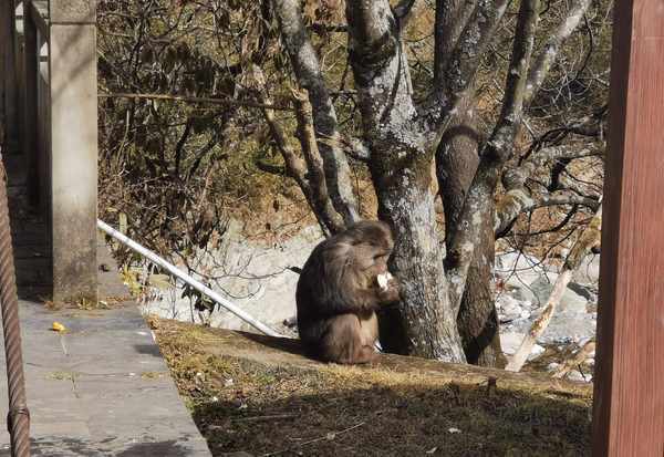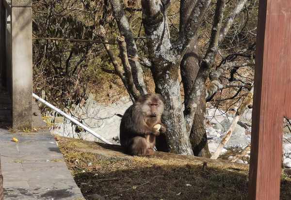 好家伙!给我吓出一声冷汗!以前只听人说峨眉山的猴子会抢游客的包,没想到在唐家河居然亲身体验了一把。孩子妈妈埋怨说,早知道就不该带吃的出来。虽然被吓了一大跳,还好有惊无险,赶紧把剩下的食物藏起来,孩子又跃跃欲试拿着手机去拍猴子。说来奇怪,这些猴子似乎不怕人,就那么大大方方的或坐在地上,或随意闲逛,或爬上树梢,总之就是围着人打转。