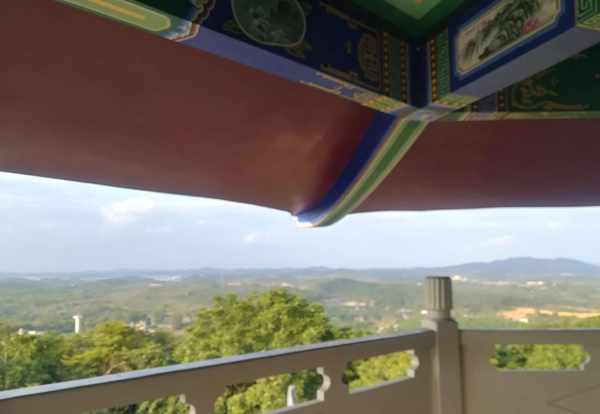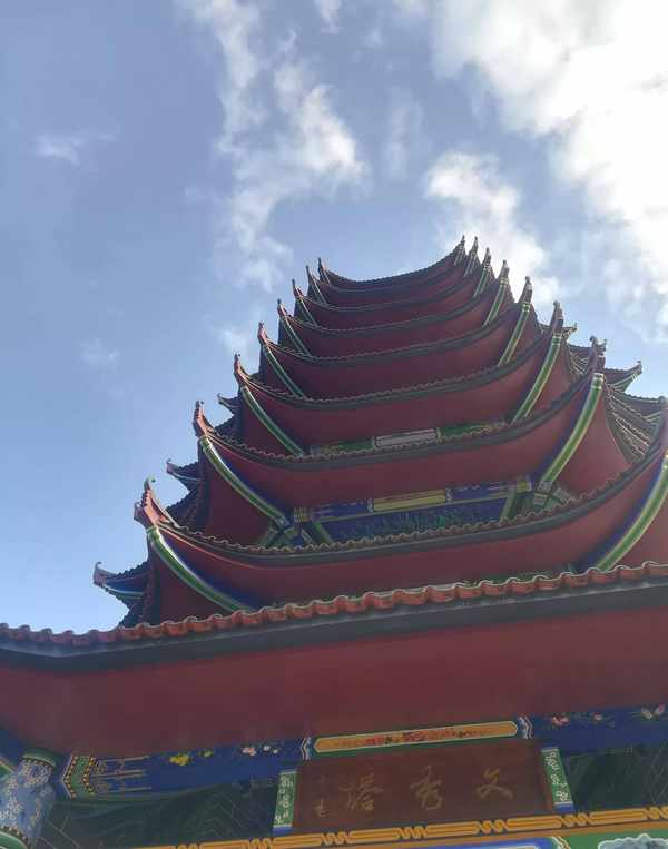 走啊走,怎么感觉进入了原始森林,大太阳底下,也太阴森了吧,转个弯,还是茂密的树林,行人也少,想打退堂鼓了,就这样下山,回休息区啥太阳得了,我媳妇说,来都来了,上去看一下那个塔再说,好吧,我也只能听老婆的,听老婆的人发财[呲牙],终于柳暗花明,一座塔,一抬头,duang!突然杵在眼前,这……总共才爬了十几二十分钟,就到了山顶了……除了有点失落,真真是惊喜!9层宝塔,高!牛!