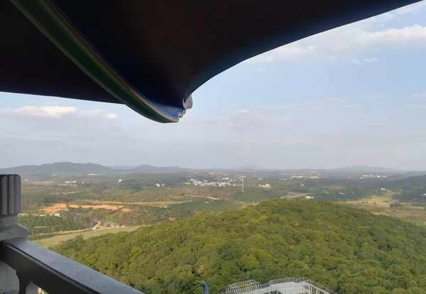 气喘吁吁的把闺女从怀里,解放下来走动,我媳妇说,好高,不想爬楼了,轮到我装逼立提:来都来了,不上去看看高空的景色?