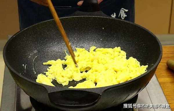 炒鸡蛋时,油温不要太高。大概四成热时把蛋液倒入锅中,轻轻地搅动,让鸡蛋慢慢的定型。这样炒出来比较滑嫩,用筷子搅散,倒出来备用。