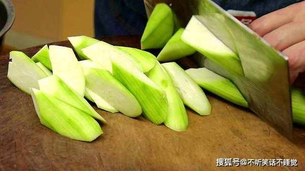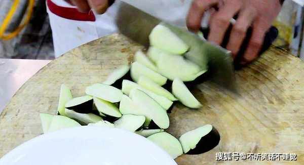 长条茄子一根,切成滚刀块。然后把茄子泡在清水里,