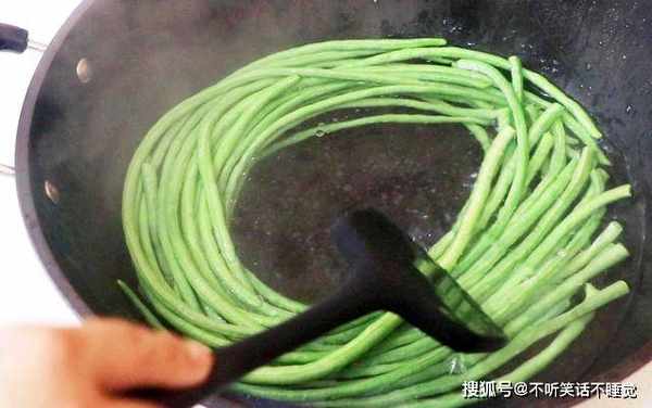 烧半锅开水,加入少许食盐,把长豆角洗干净放入锅中。淋入少许植物油,