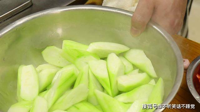 把丝瓜控干水分,放进去,大火快速汆一下。加入一点植物油和盐,入底味的同时还能锁住营养成分不流失。丝瓜返青赶紧捞出来,煮的时间长了,容易塌架出水。