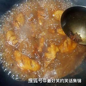 7、倒入剩余的所有可乐约750克,酱油10克,料酒10克,八角1个,盐适量。加盖开大火至可乐开锅后转中火,炖至汤汁浓稠。