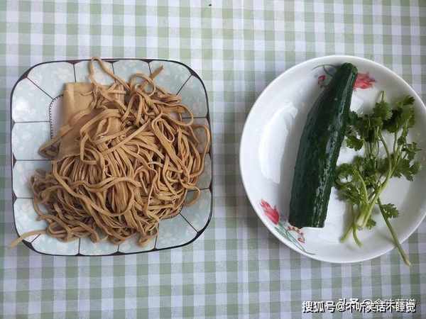 1、准备适量干豆腐丝,黄瓜半根,香菜适量,具体以自己家人的量准备,喜欢吃辣椒的可以准备一些小米辣。