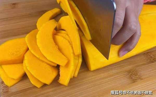 1、南瓜去皮,切成小块,上锅蒸熟。