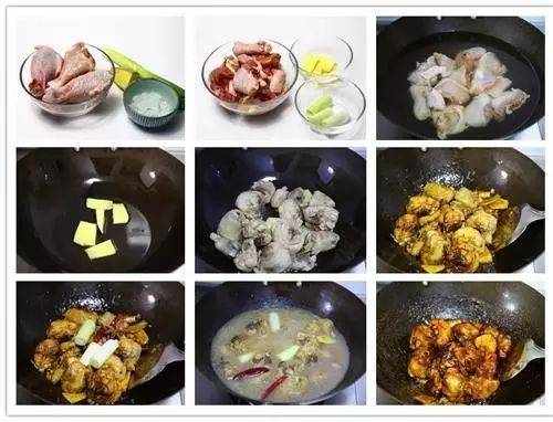 1.将鸡斩件,剁成方形或长条形的块都可以。然后用清水将鸡块洗净,备用