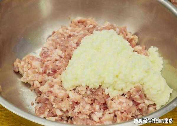 肉馅中加盐 、鸡粉、 胡椒粉、一点生抽 、蚝油来提鲜, 顺着一个方向快速搅拌摔打,一次一次的把葱姜水吸收了。