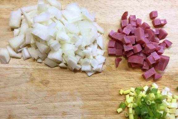 如果你也有这样的苦恼的话,那就接着往下看吧,今天我就给大家分享一个简单的早餐做法,5分钟就能解决,比早餐店好吃多了,孩子吃得香!【葱花火腿鸡蛋饼】第一步:准备食材面粉500克,火腿肠2根,鸡蛋2个,洋葱半个,食盐、香葱、芝麻、食用油各适量。第二步:把火腿肠和洋葱切丁,香葱切断,芝麻洗干净备用。切之前洋葱可以冷藏一下,或者是切得时候鼻子上塞上卫生纸,不容易辣眼睛。