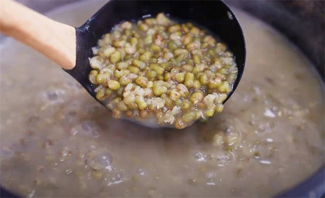 7.开水浸泡后绿豆吸收水分,然后又遇冷结成冰块,体积变大自然会把绿豆撑出裂纹,这样在煮的时候又遇到热水,裂纹就会被撑开,所以就很容易的能够煮出绿豆沙了。