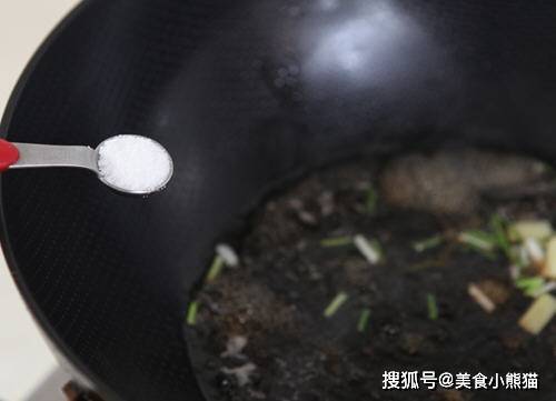 6、调入生抽、老抽、香醋、糖、盐、清水,炒匀。