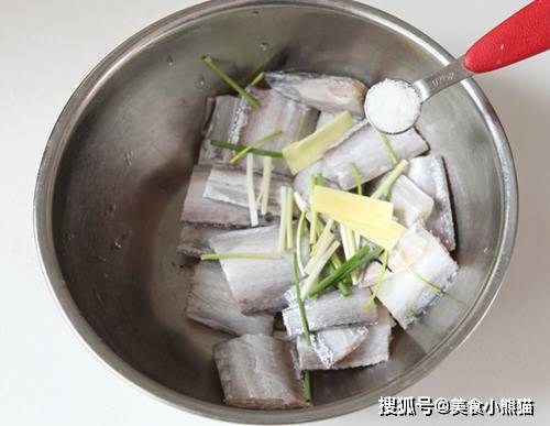 1、带鱼冲洗净去内脏切成段放入容器,加入葱姜段,调入盐。