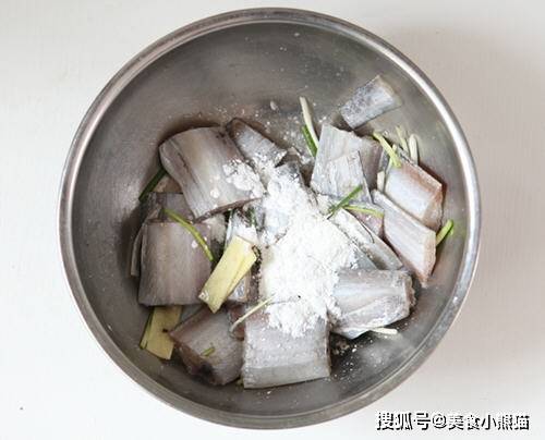 2、加入料酒、淀粉,抓匀后腌制30分钟。