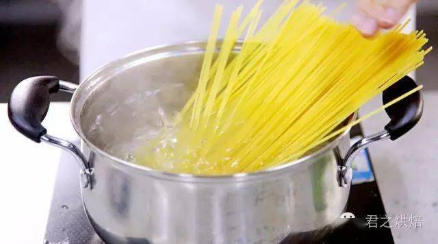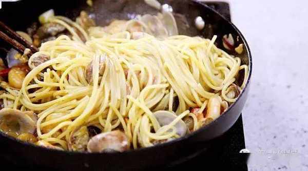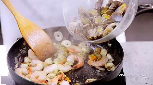 2、煮意大利面的时候,有两个点很关键。一个是煮面的水里 要加盐,才能保证面条的口感和味道。另一个是煮面的时间,包装上都会有煮面的建议时间(不同的面条时间可能不同,一般为8-10分钟,请以包装上的时间为准),但这款面条煮好以后要捞出来与海鲜混合,并翻炒吸收海鲜汤汁,所以煮面的时间要比建议时间 减少1分钟左右,以免面条煮过头失去弹性。