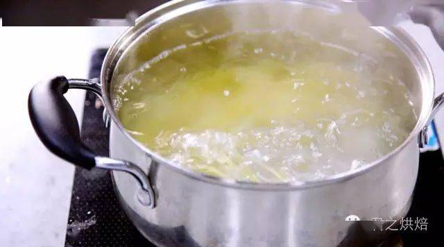 接着煮意大利面。深汤锅里倒入大半锅水,并在水里加入盐(水和盐的比例为1千克水加20克盐)。煮沸。