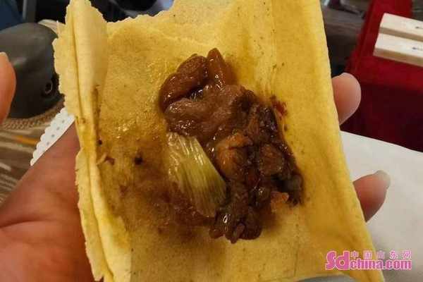 “来,尝尝我们的临沂炒鸡!”“我给您卷一个”“山东不光有淄博的小饼卷烧烤,还有临沂的煎饼卷炒鸡!”……工作人员热情地招待大家品尝临沂炒鸡。记者了解到,为了能让游客尝到正宗临沂炒鸡的味道,工作人员一大早炒好带上车的。