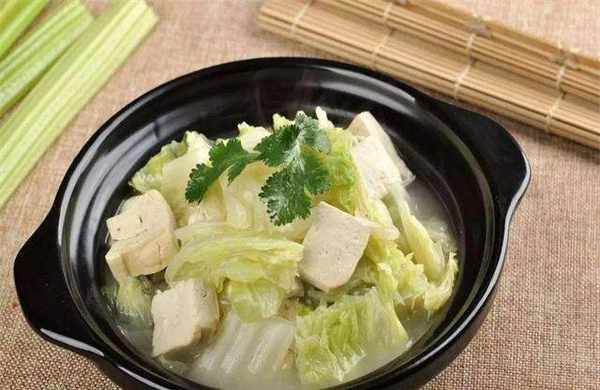 豆腐入锅后不要翻动,以免豆腐变烂,小火慢炖,约3分钟后将芹菜倒入锅中,即可出锅装上一个盘子最多30秒。这样做出来的白菜炖豆腐就是一道汤菜。因为有海鲜和高汤的加持,所以汤汁非常鲜嫩可口。喝了它会让你感到满满的幸福感和满足感。