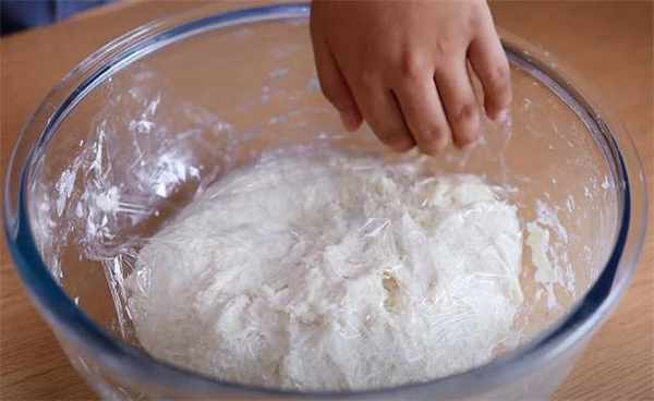 2.在饧的过程中面筋会自己形成,表面也光滑了很多,最后用手揣到这种表面光滑的程度,再饧上30分钟。