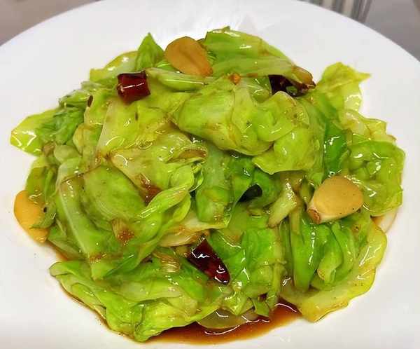 加入适量盐和白胡椒粉,继续翻炒至包菜变软和鲜绿色即可。