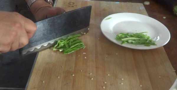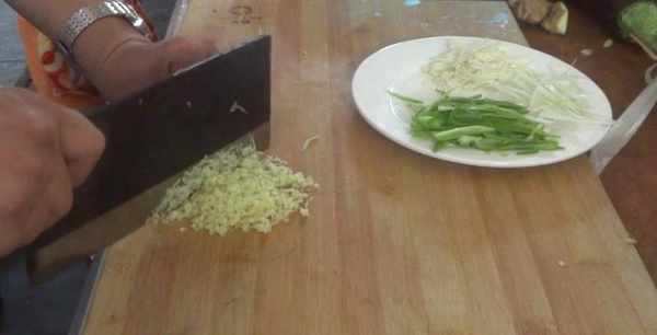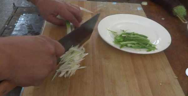 3.葱切丝、大蒜瓣切小丝、姜切末。