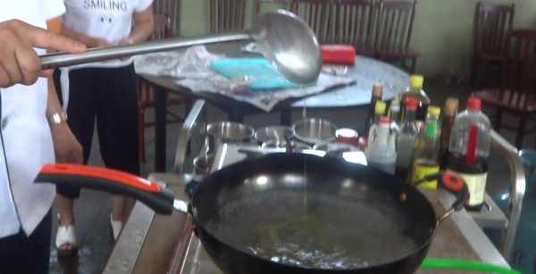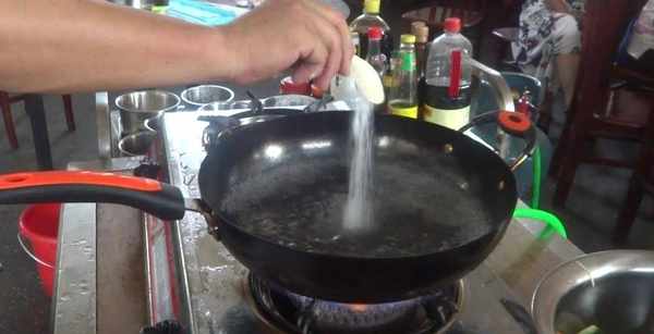 4.锅中水开后,放入少许盐、味精、花椒油。