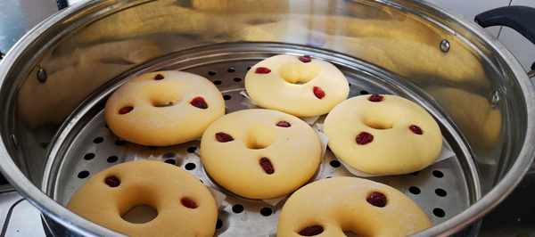 大概45分钟,这个体积明显变大,用手一摁又能迅速回弹,说明已经发酵好,扣上盖子水开以后计时蒸15分钟,关火三分钟后再开盖将它取出,这个玉米面甜甜圈就做好了,真的是特别的蓬松又宣软,口感呢,一点也不粗糙,营养又好吃,关键是造型好看,家人都喜欢。