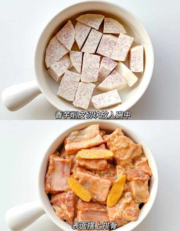 主要食材:排骨,芋头,姜葱,生抽,蚝油,淀粉,食用油,清蒸排骨怎么吃都不会腻,加了芋头更是多了重香味和口感,喜欢吃清淡的排骨,那这道菜一定要学会了。