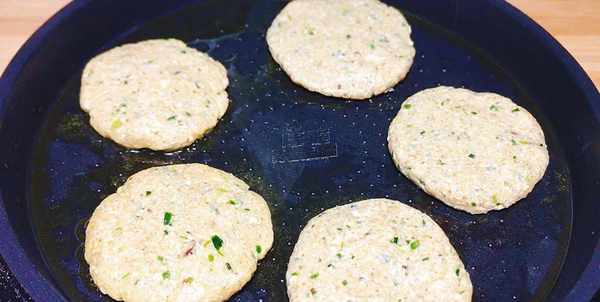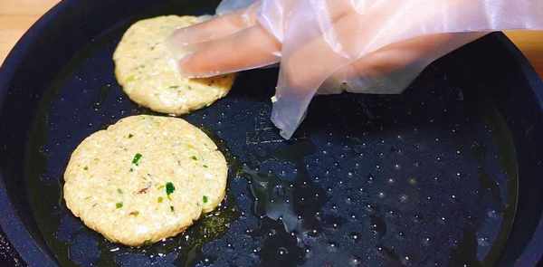 六:肉饼拍好,平底锅预热刷油放入拍好的饼子