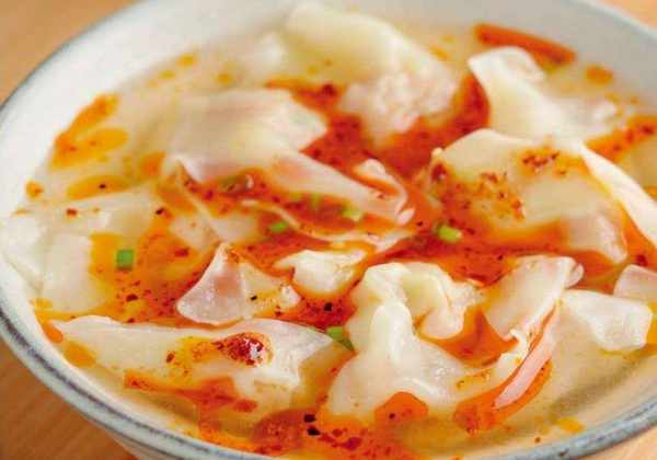 5.锅中加入适量水烧开,下入抄手,煮熟后盛入碗中,调入香油、花椒油、辣椒油、生抽、香醋,撒上葱花即可。