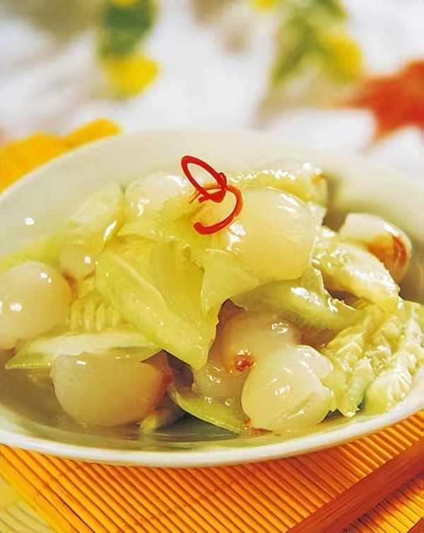 1.将荔枝去皮、核;丝瓜刮去皮,洗净,切片。