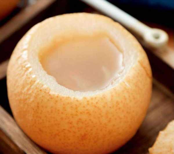1.雪梨洗净,取顶部约 2 厘米处,切去用作顶盖,用勺子挖去中心的梨肉和果核,剩下的梨肉厚约 1.5 厘米。