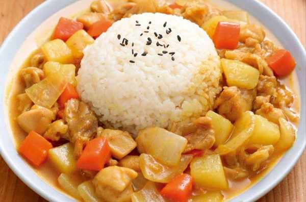 咖喱 2 或 3 块|盐 1 勺|生抽 1 勺|料酒 1 勺|熟黑芝麻、食用油各适量