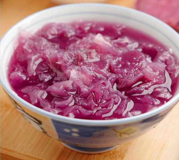 1.鲜银耳洗净,浸泡约 10 分钟,用手撕成小朵;紫薯去皮洗净,切成滚刀块。