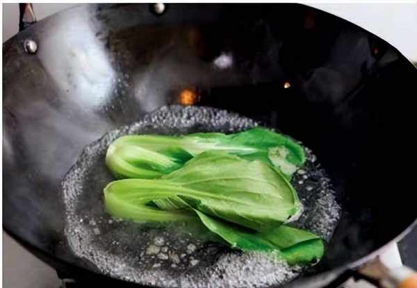 5.另起锅,加入适量水烧开,下入青菜,煮约 1 分钟捞出沥水。