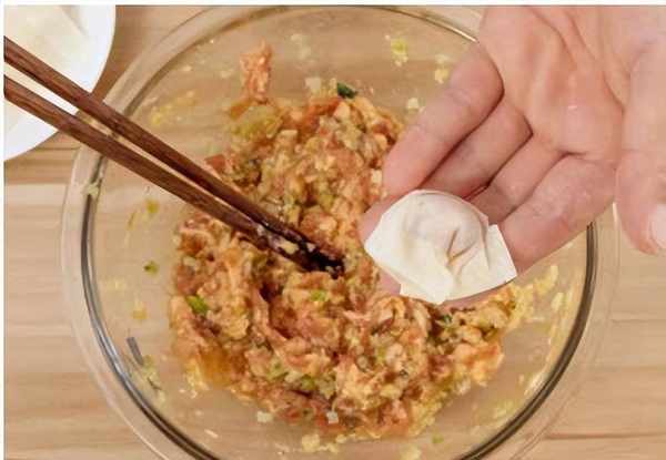 猪后腿肉 300 克|芹菜 100 克|鸡蛋 3 个|馄饨皮适量