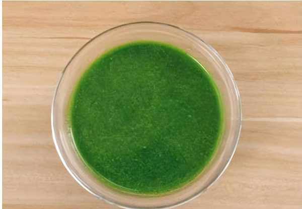 2.锅中加入适量水烧开,下入菠菜,焯熟后放入榨汁机中,加入适量水打成菠菜汁。
