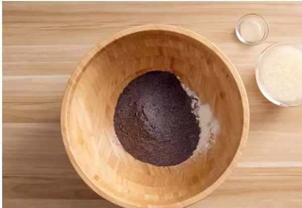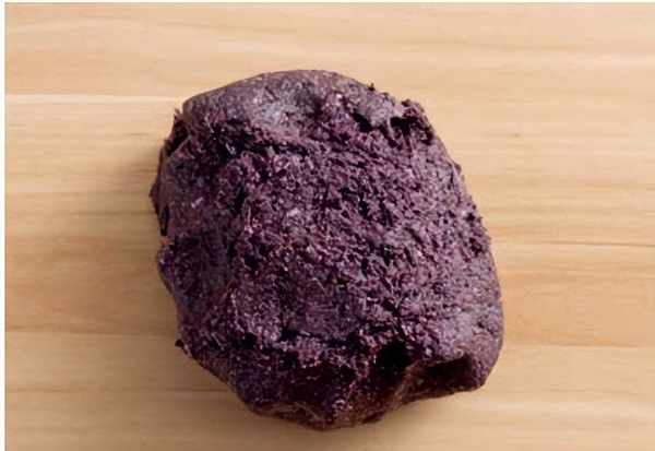 2.中筋面粉中加入黑米粉,倒入搅拌好的酵母水,拌成面絮状。感觉太干的话,再少量多次加些水,直到把面絮揉成光滑不粘手的面团。